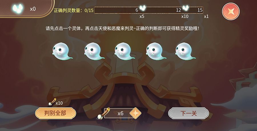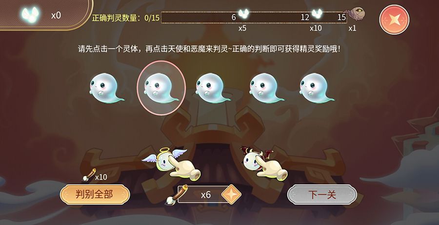 在进入轮回殿后,逐个点击灵体并进行好、坏的判断,完成任务后进入下一关,完成整个判灵环节。