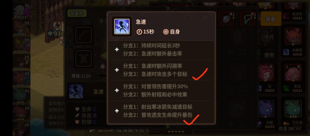 but,前排选择闪避冰弓是因为可输出可前排,没有选择多重或者五连是因为,极速分支带闪避会更肉些,并且冰弓控制真的很足。