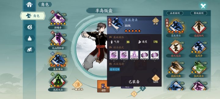 核心是星辰身法,看了一些攻略发现大家都被误解了,红色功法没有三星之前是比较拉的