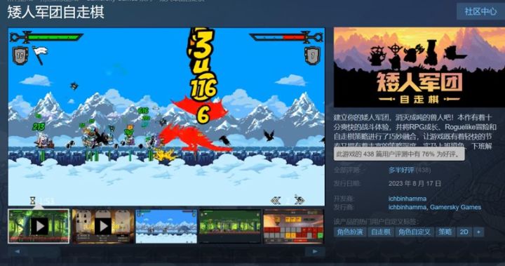 《矮人军团自走棋》Steam在线玩家2.3k,致谢中国玩家