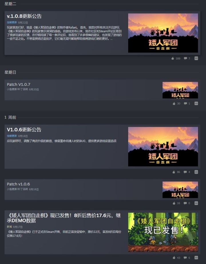 《矮人军团自走棋》由来自奥地利的独立游戏人Rafael开发制作,融合了RPG成长,Roguelike冒险和自走棋策略等诸多元素,自走棋全自动战斗简直摸鱼划水必备,开着4倍速开着像素小人互殴莫名解压,既让游戏保持了简单易上手的休闲风格,又兼具了丰富的策略玩法。