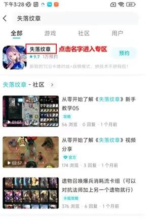 第一步:手机打开TapTap程序,搜索“失落纹章”进入游戏专区: