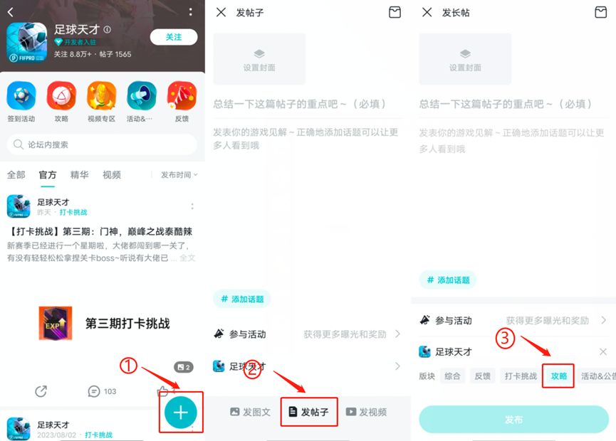 Step1:在“足球天才”TapTap论坛内,右下角选择加号分享您的攻略帖