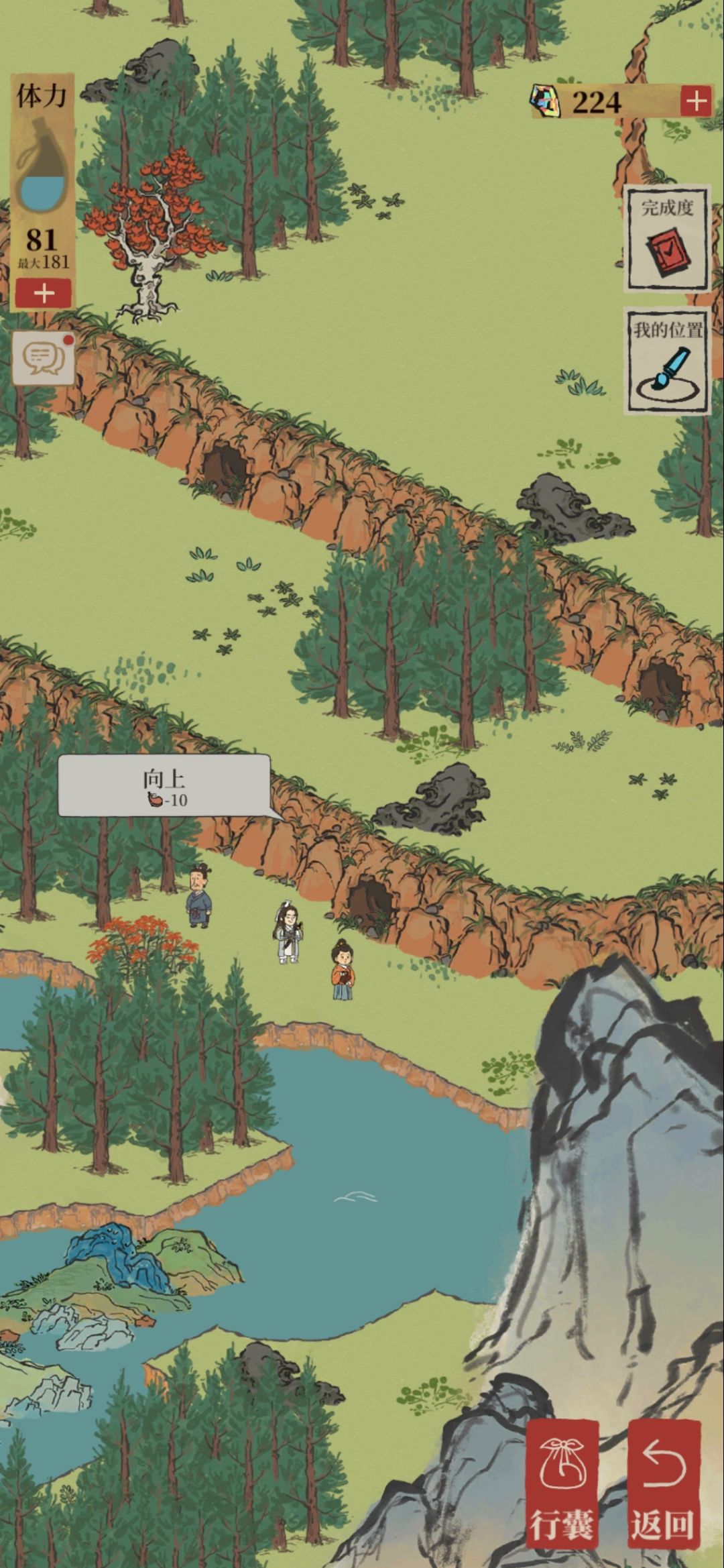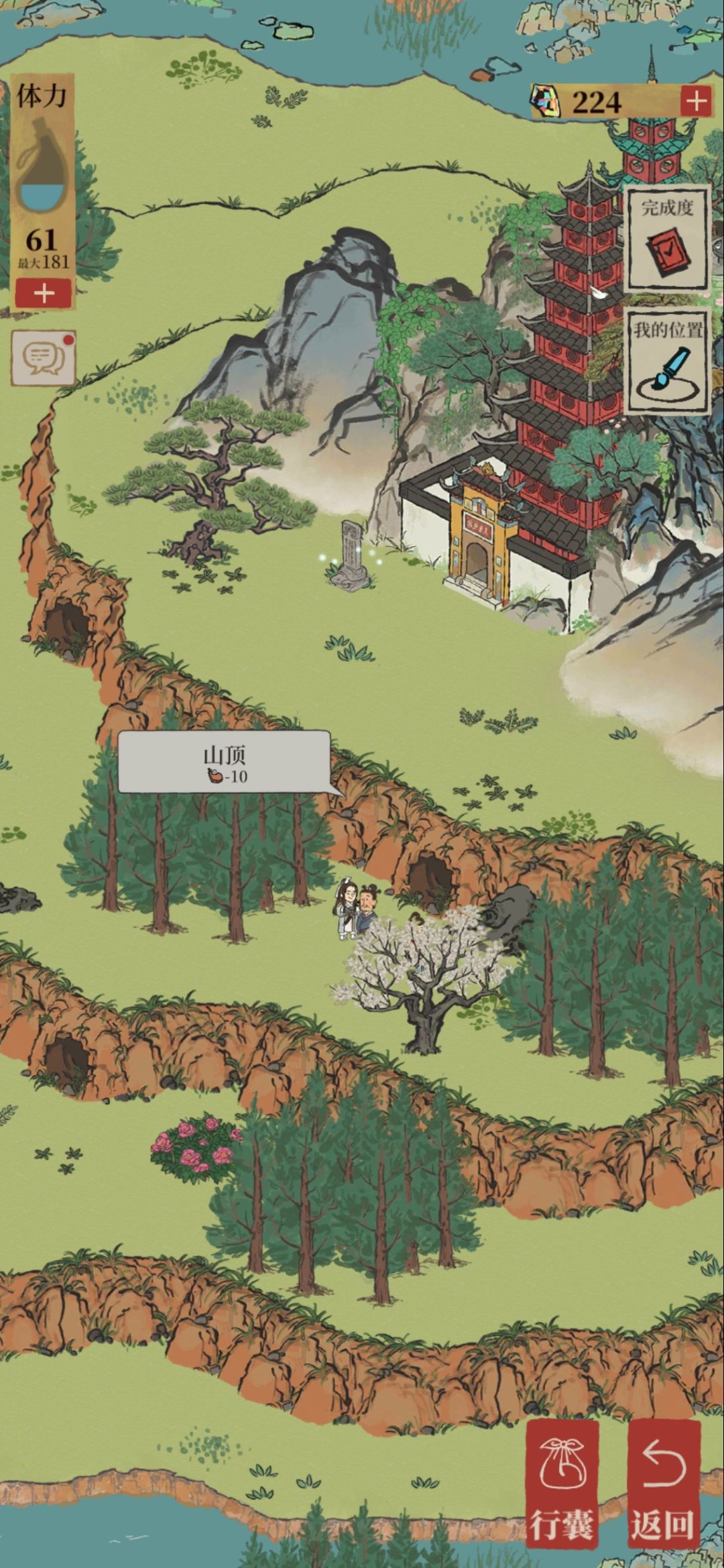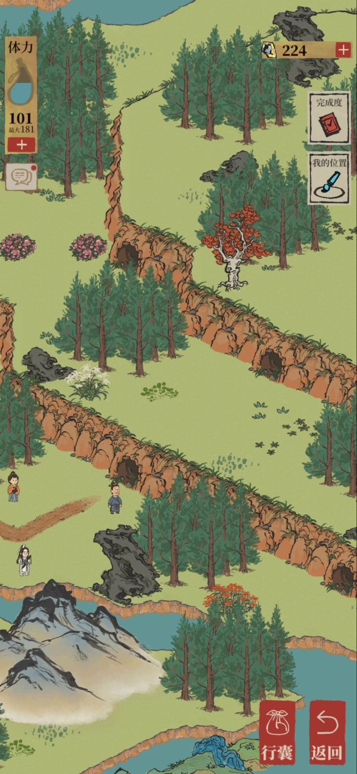 在完成所有任务,看到骑马童的马场往前走路口拐弯有一个断桥修复会解锁新地图一堆山洞,走到中间那个点击向前进入旁边山洞,再次点击洞口向前,进入再点击向上,进入再点击向上然后进入山顶,帮助塔恢复颜色一笔画下来就可以领取60宝石和两个画卷啦