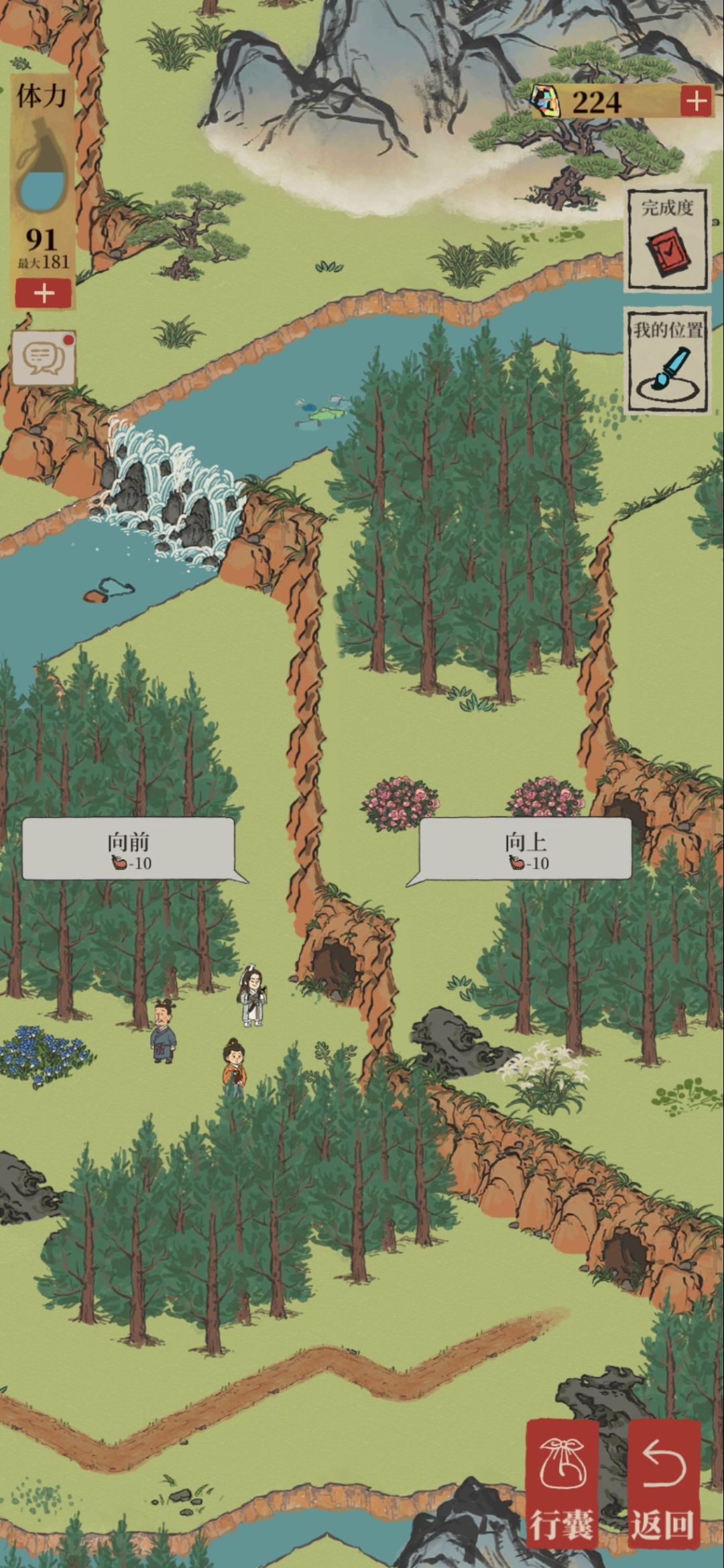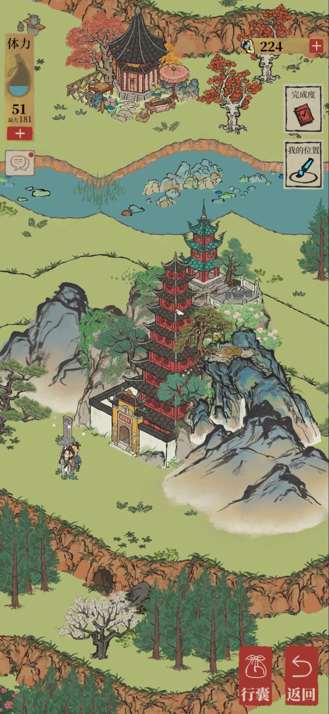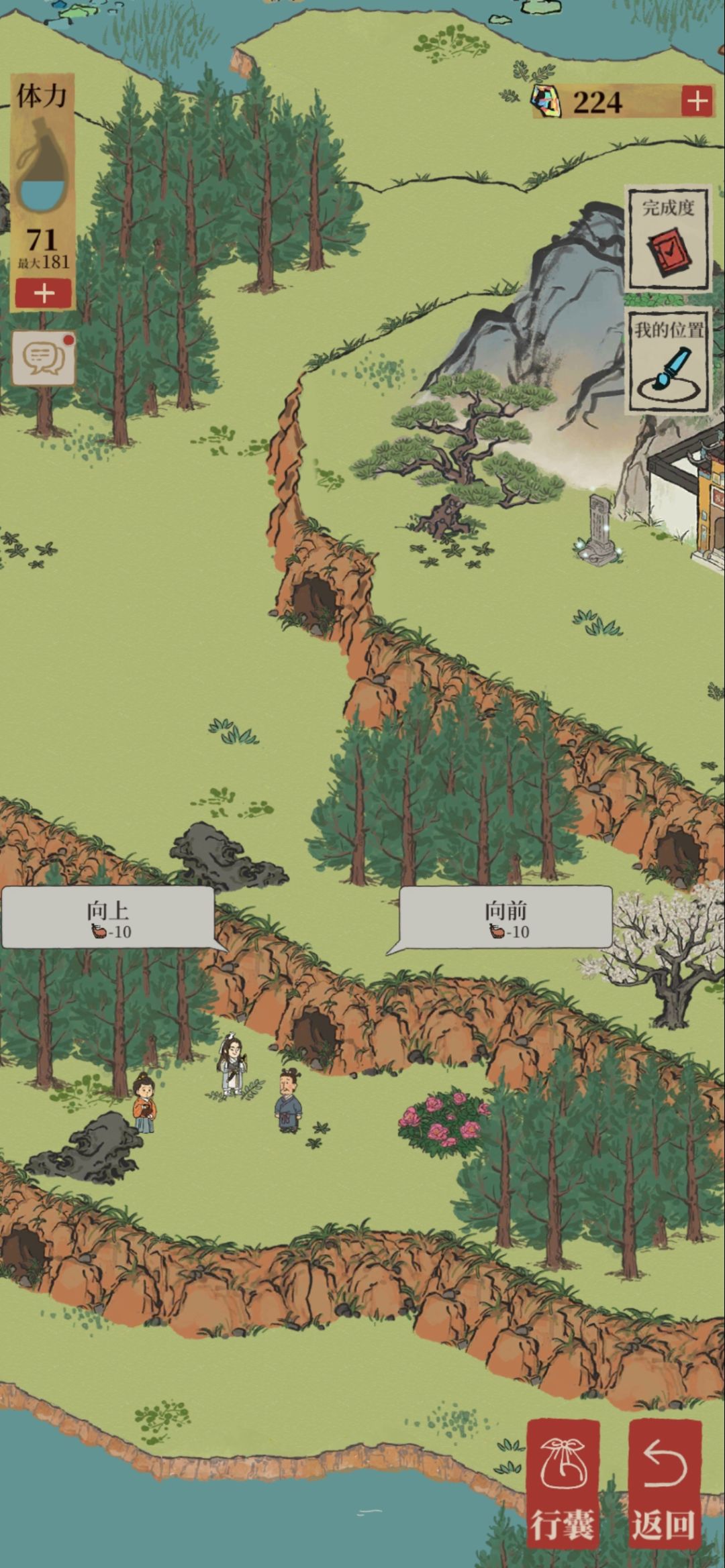 在完成所有任务,看到骑马童的马场往前走路口拐弯有一个断桥修复会解锁新地图一堆山洞,走到中间那个点击向前进入旁边山洞,再次点击洞口向前,进入再点击向上,进入再点击向上然后进入山顶,帮助塔恢复颜色一笔画下来就可以领取60宝石和两个画卷啦