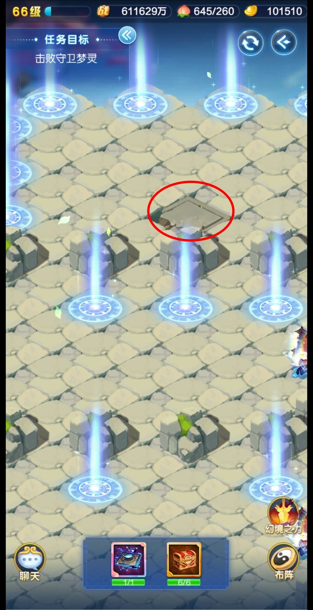 最后来到图五,这里就不要点传送阵了,点红色圈圈标记的地方,就可以传送到任务目标。