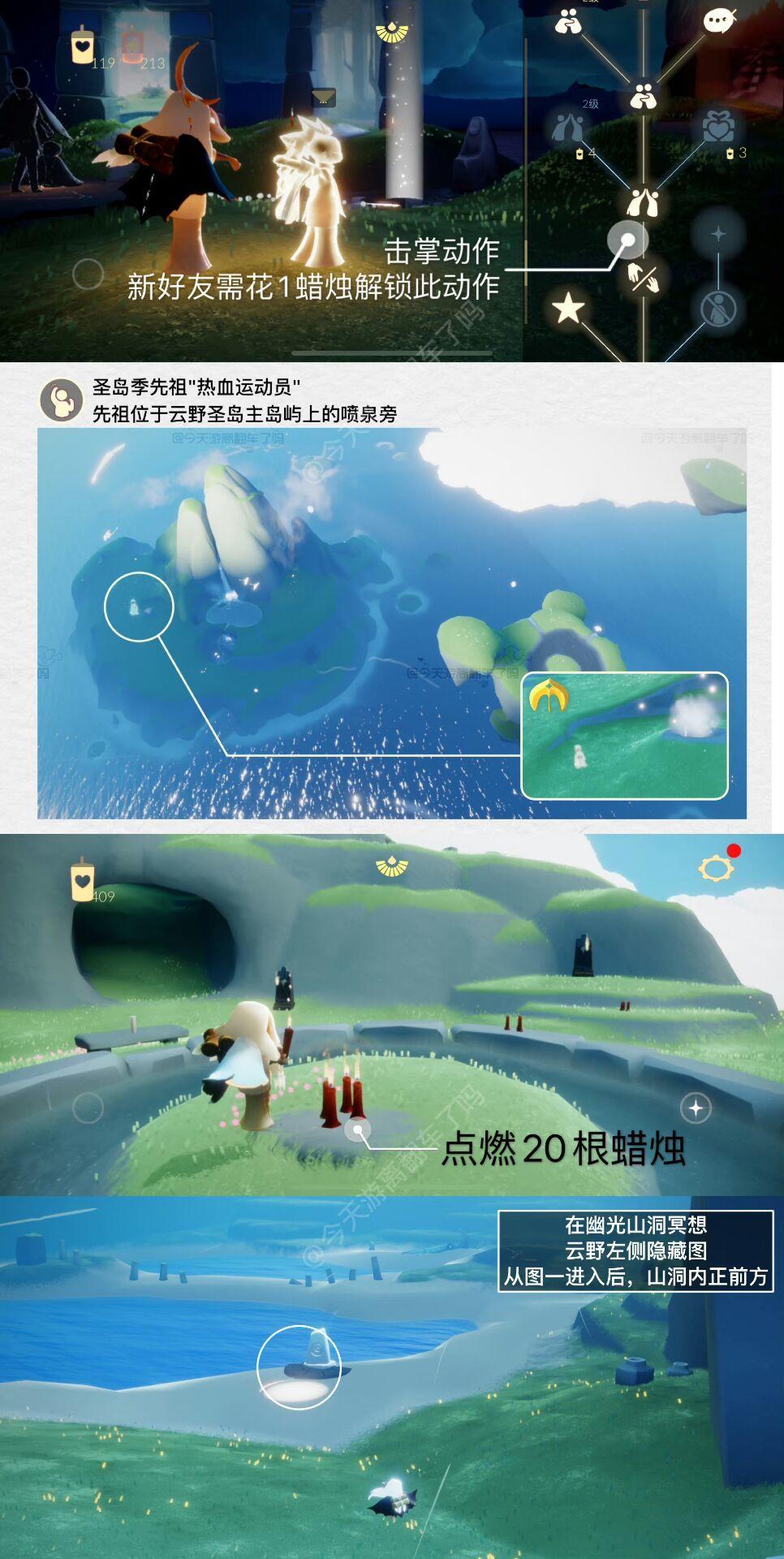 《光遇》游戏中每天的每日任务及大蜡烛的位置都不相同,玩家完成每日任务及收集大蜡烛都可以得到丰厚的兑换奖励,奖励可以用于兑换各种动作及道具,不过很多小伙伴不知道每日任务怎么做,又懒得自己去找大蜡烛的位置,我们汇总了每日任务的完成攻略以及蜡烛位置,一起来看看吧!