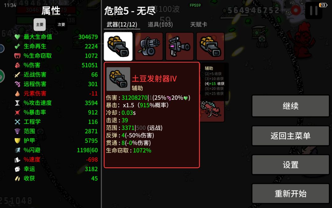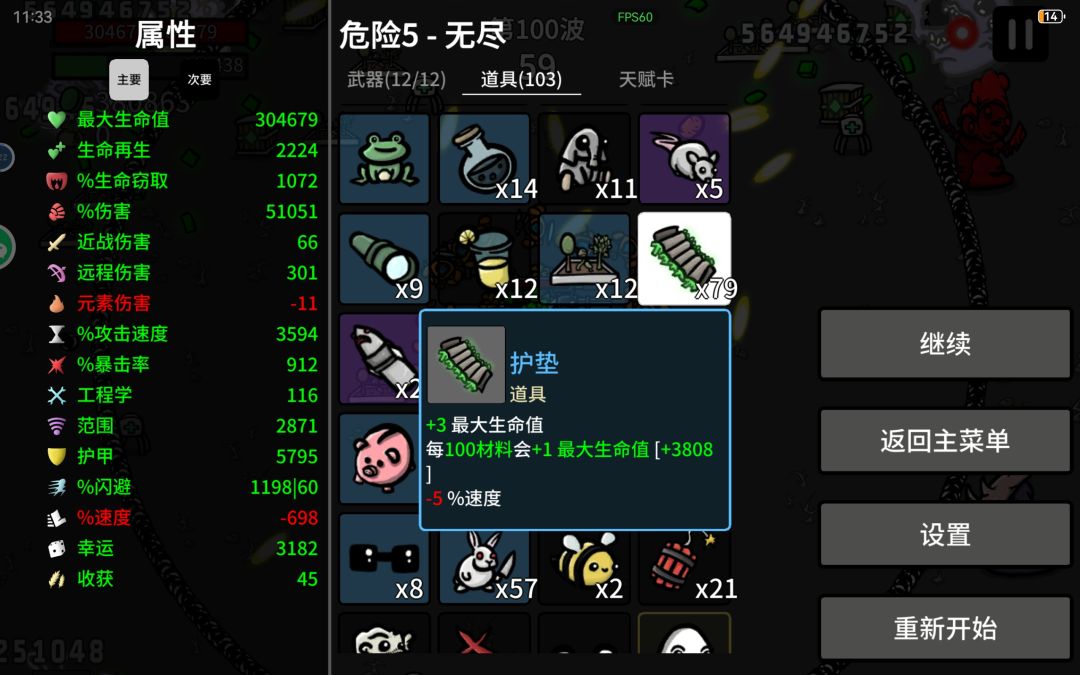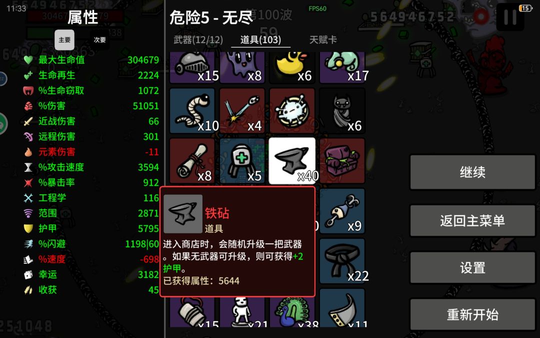 中后期差不多四五十波,看收获情况,少于5w左右,就开始完全不买东西,把商店全锁武器就行,升级从来都是以幸运为主。只要基础伤害(远程)和幸运,有硬币等于只买远程、幸运和暴击
