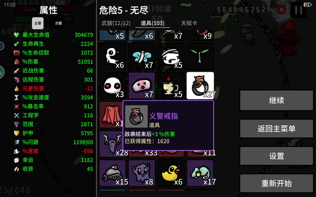 后期就是商店不能买,升级不能刷新,全靠箱子养活。记住,能堆叠的就是好的,有钱开始幸运就是一切。后期所有加成全靠箱子,这游戏最重要的东西就是幸运。