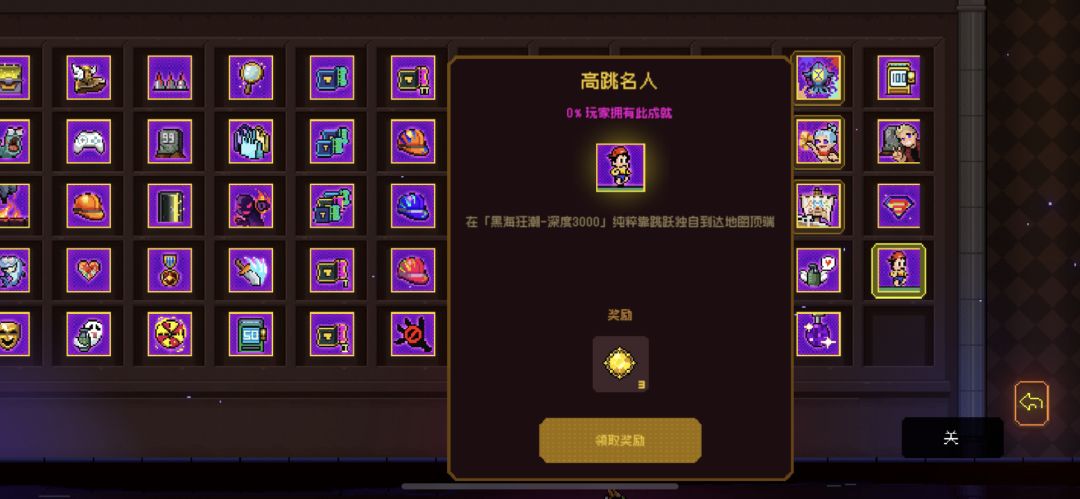 1.先说一下隐藏成就:纯靠跳跃触碰到天花板,可以小明+柠檬果冻+兄弟会徽章,这是最快的,但其实如果正常玩,也是可以完成的,无论什么人物,只要在黑海里多捡几个二段跳外加兄弟会徽章,在信标防护罩上面那个台子开始跳,很简单,还有兄弟会徽章很重要!(无需通关也可完成)