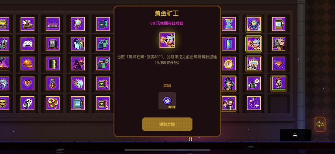 3.黄金矿工:这个成就是共享的,只要有矿工从第5波开始到结束全部挖完,没挖过的人也可以完成,最好是2人主输出,2人主挖矿,主输出要带箱子,挖矿带显卡,纪念品出门最好带月亮头+神性,两个人一左一右,轻松完成。值得注意的是第10关的小boss关输出打慢一点,这个小boss很脆,给矿工留点时间挖矿。(需通关完成)