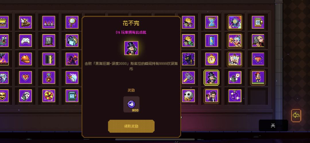 4.花不完:这个成就就是要注意一下自己的钱,别在最后几关花太狠了,20关的boss钱很少。还有如果超过9999了变成10000+了,就去吃外面的绿点点,系统会自动给你降为9999。(需通关完成)