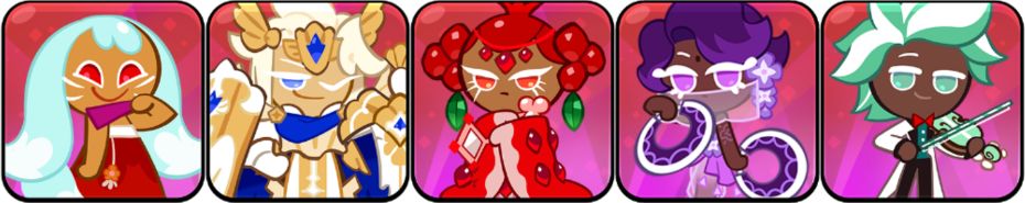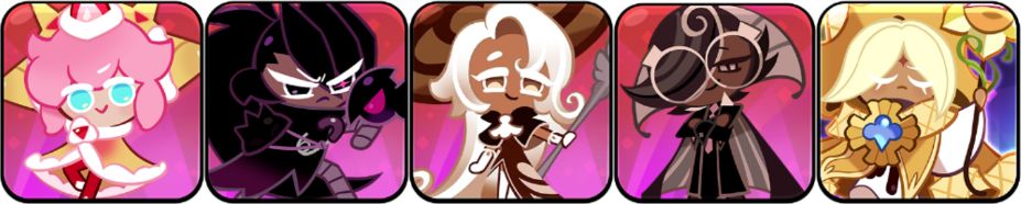 配队思路:该队需要玛德莲和紫丁香吃到宝物斗篷的效果,玛德莲和紫丁香必须是队伍中攻速最高的两个饼干。开局利用妖狐先手魅惑效果,让玛德莲和紫丁香可以吃斗篷效果进行输出。队伍中配置有两个恢复饼干,石榴饼干和薄荷巧克力则是保证队伍生命值安全的情况下,将对局打到1分钟,1分钟后,依靠石榴的加攻击和薄荷巧克力提升队伍攻速的效果,让玛德莲和紫丁香的伤害最大化。