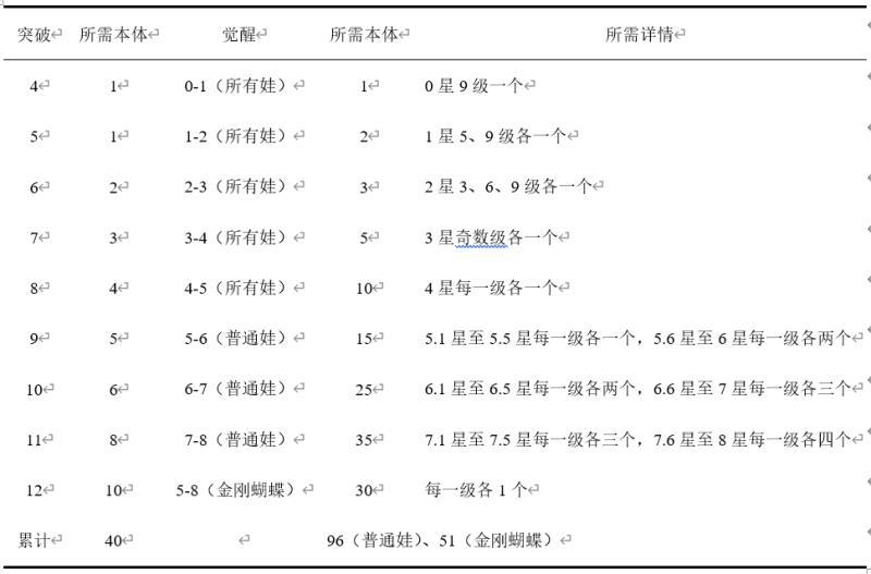 2、突破、觉醒所需资源