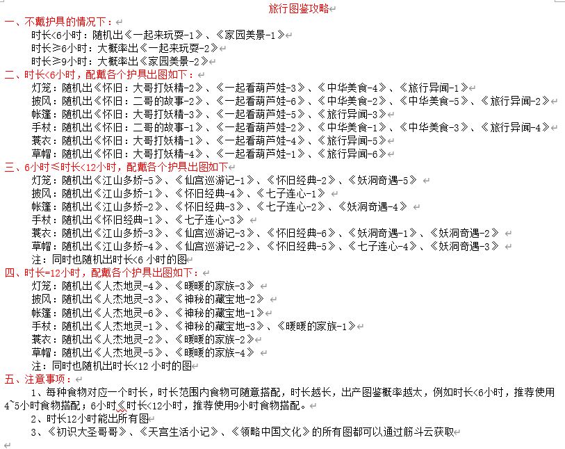旅行图鉴比较复杂,下面是整合的别人的: