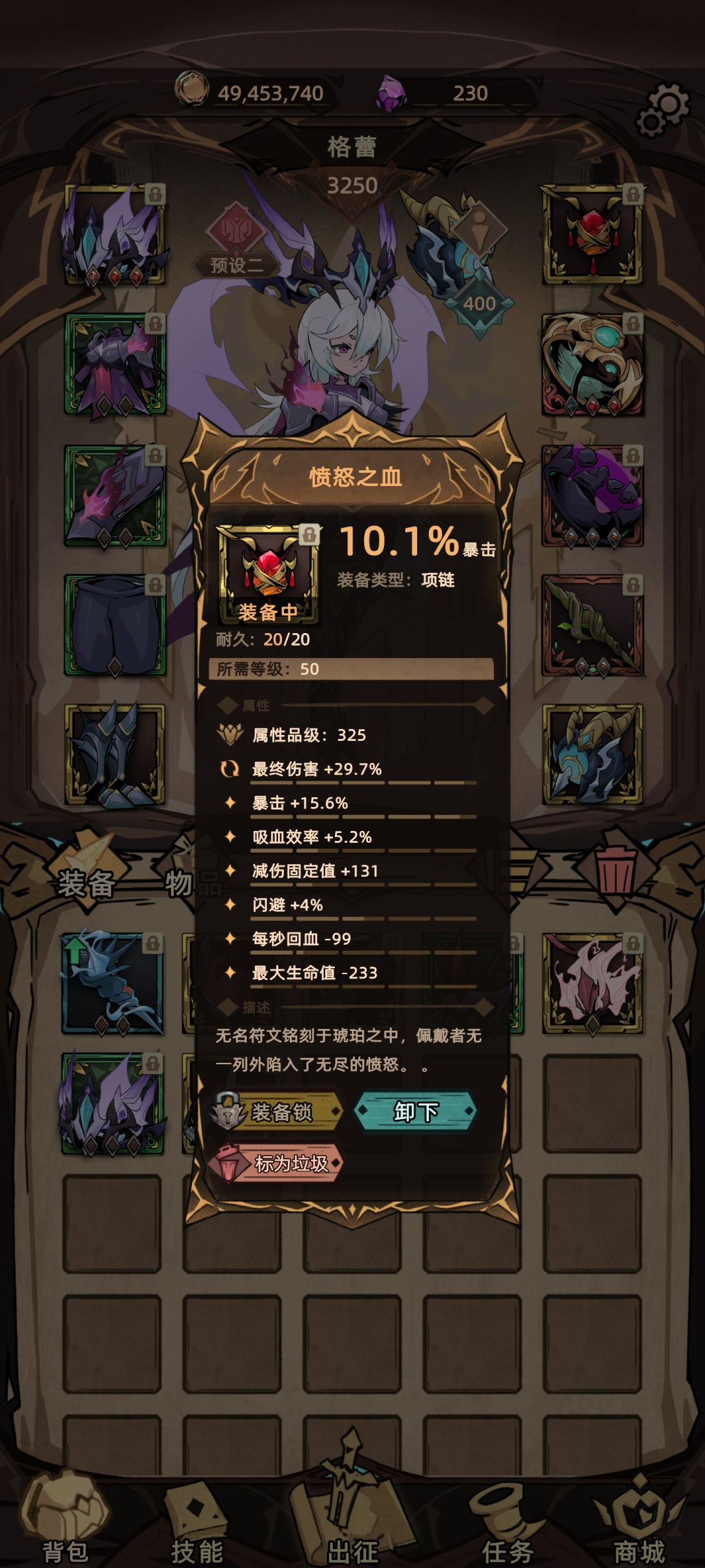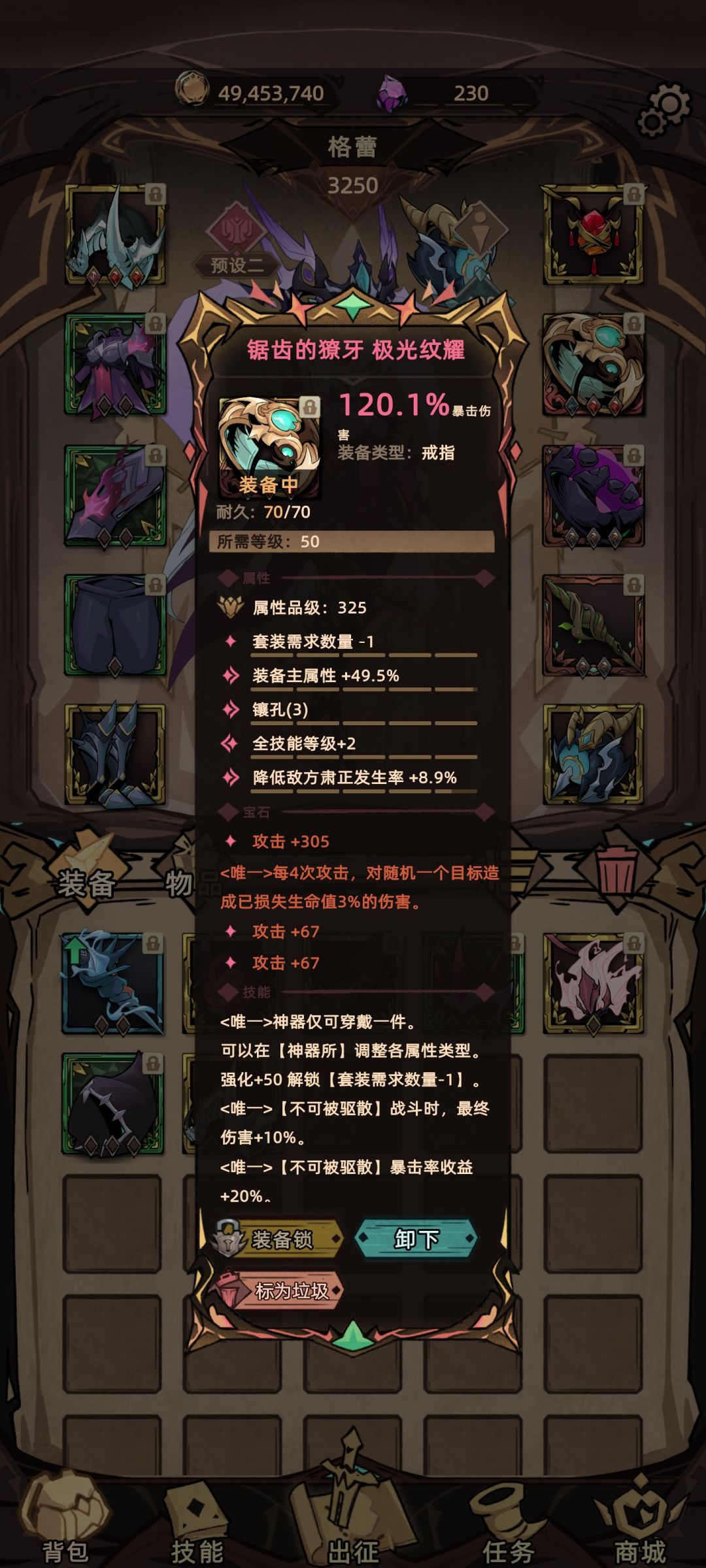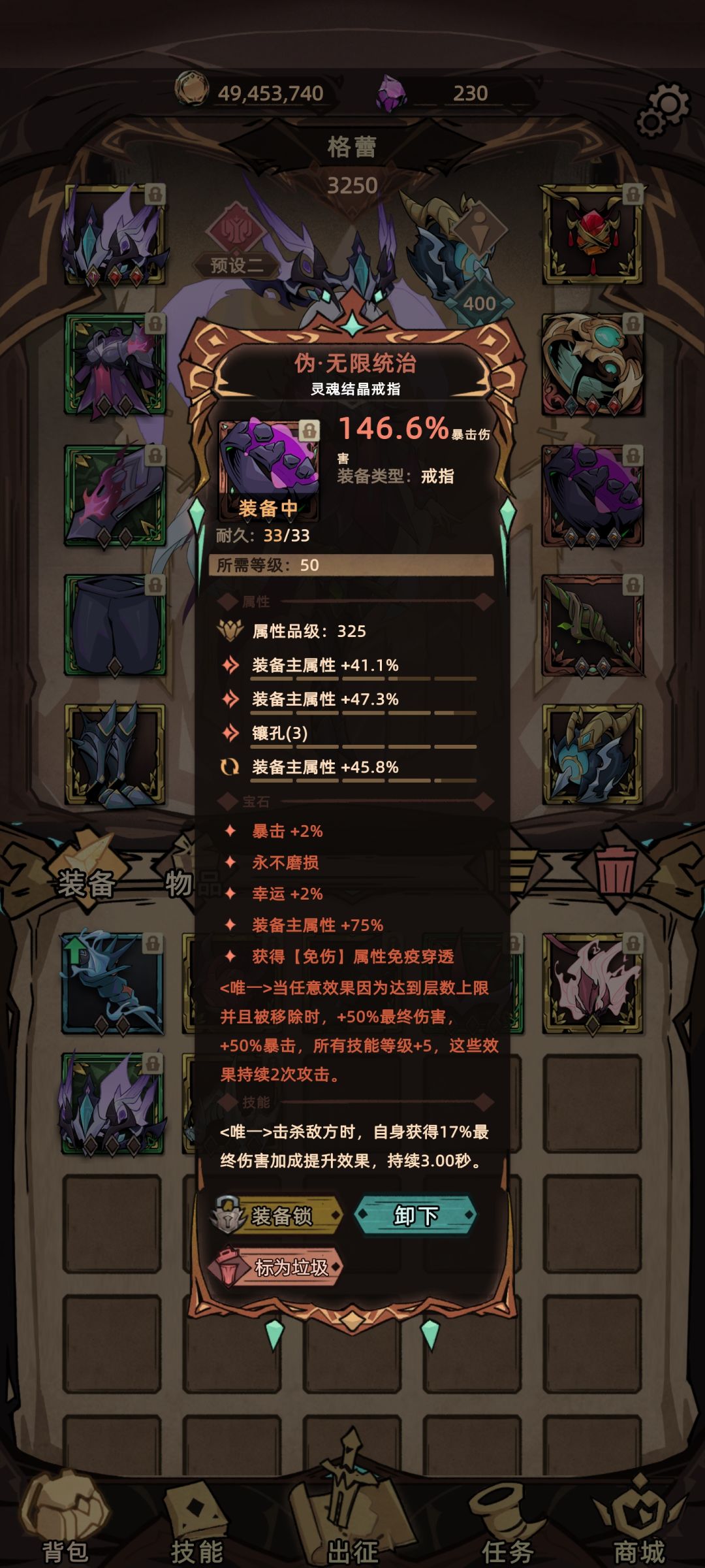 BOSS限定掉落 高额的终伤与高额的暴击 还附带吸血 魔界腹地最后一关掉落