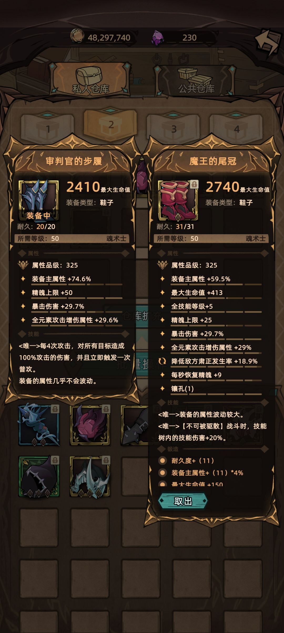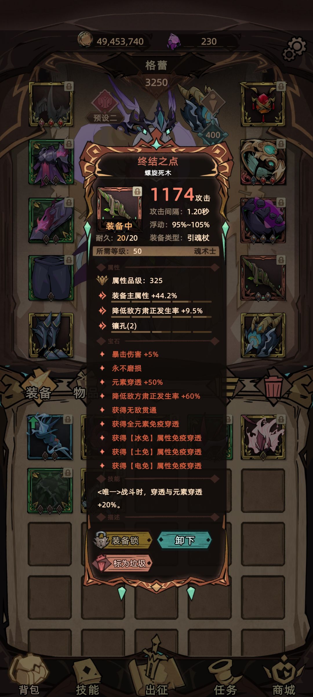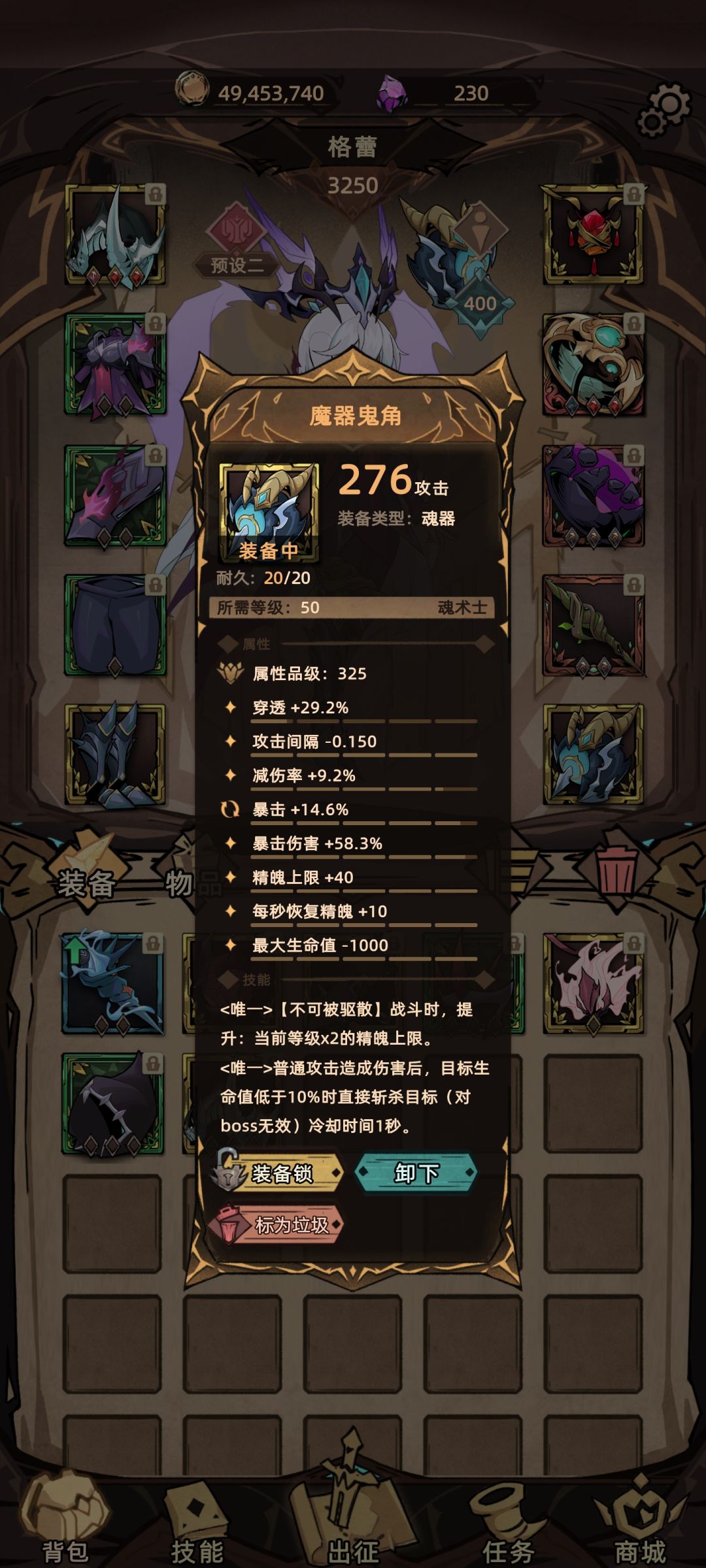 BOSS限定掉落 高额的终伤与高额的暴击 还附带吸血 魔界腹地最后一关掉落
