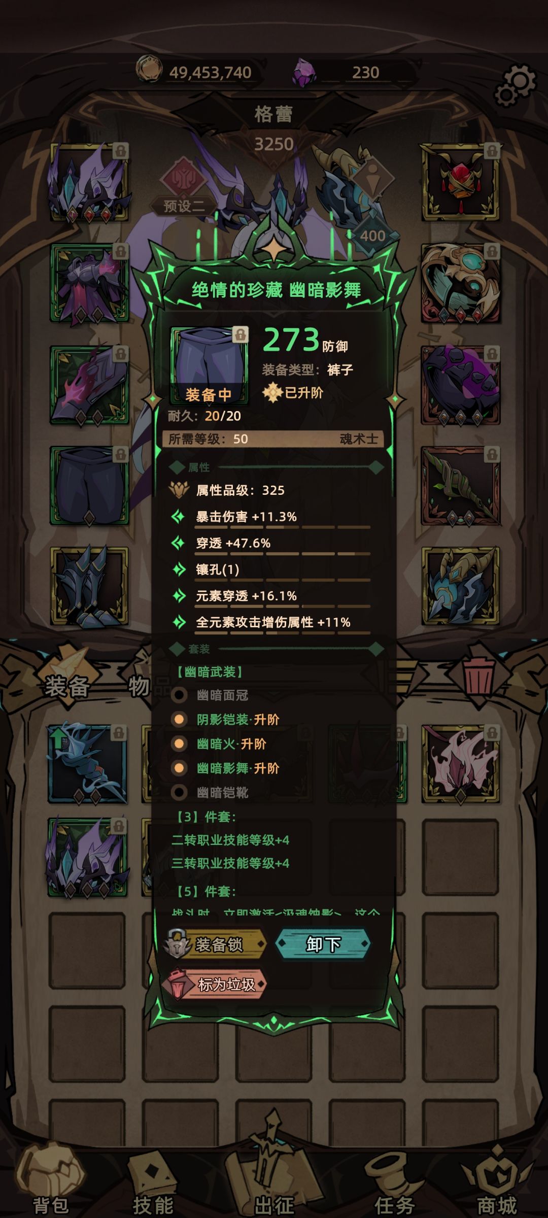 套装三件套需要的属性压力其实蛮大的 因为需要的元素穿透词条过多 不过其实可以去用其他部件补足