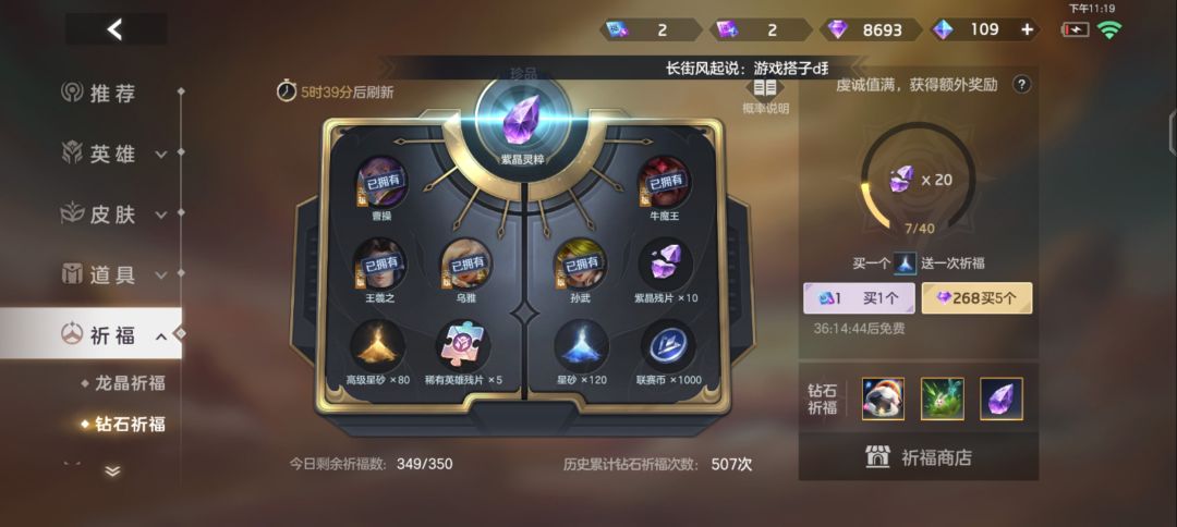 ①:抽奖我估计很多玩家上来就抽这个(我刚玩也是,往死里抽……),这个比较看脸,运气好可以直接抽出英雄,还有一些资源,不过在前期这种资源匮乏的环境下,不推,除非你很想要嫦娥