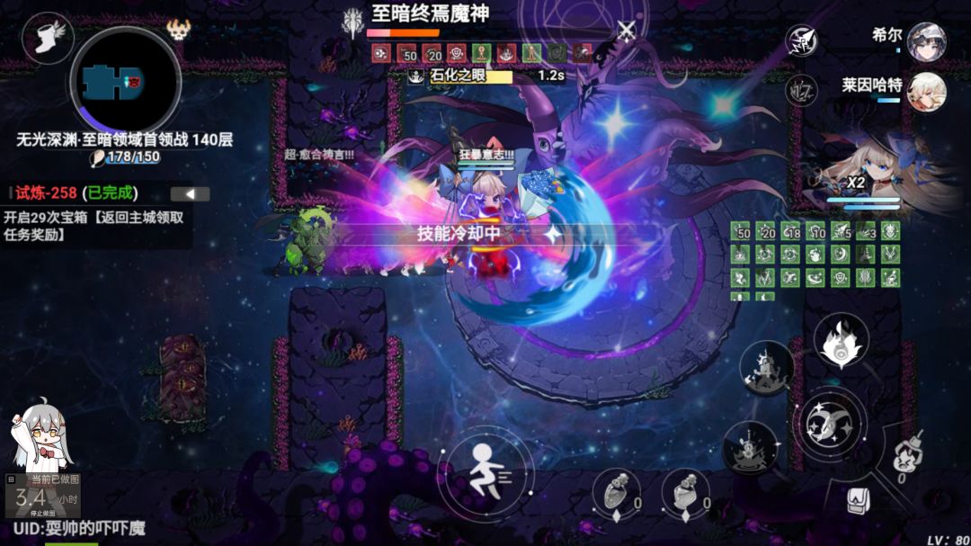 134层到140层全都是用雅天帝过去的,不知道是不是运气好,这几层,次次都能碰到幸运花环(30能量值),进图前517能量(今天用怨恨刷了个加12能量的词条),进图刷满魔爪是813能量,加了幸运花环是872能量(140层只有813能量),打起来是真的舒服,只能说不愧是雅天帝,削弱改版之后依然能逆属性而行,可想而知刚公测那会儿雅天帝的伤害得多么的高(可惜削了)······