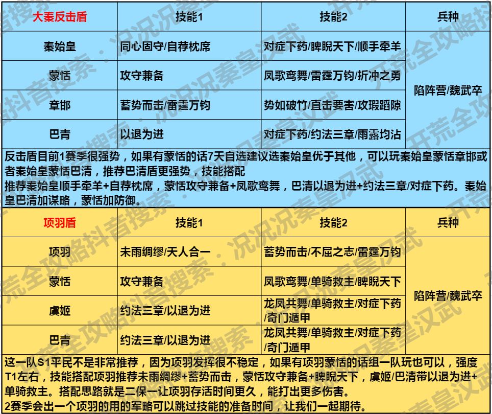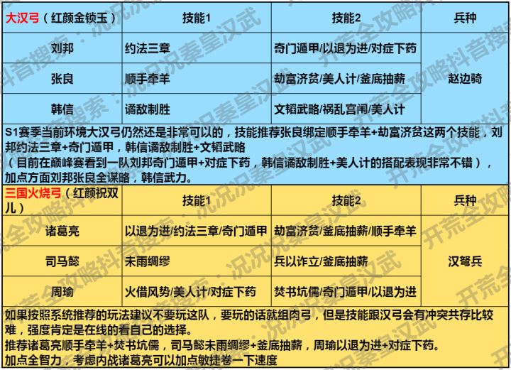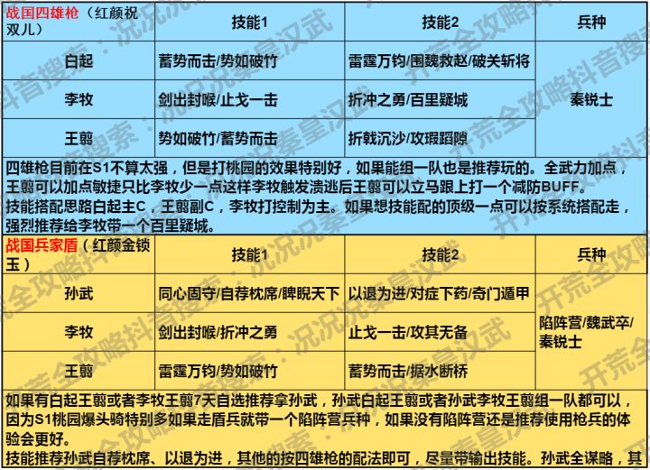 总于找到最全S1赛季武将技能搭配攻略,分享给大家