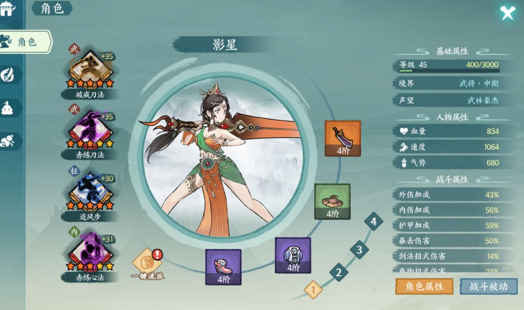 官配赤刀的基础上把轻功换为追风步,用于叠力量。