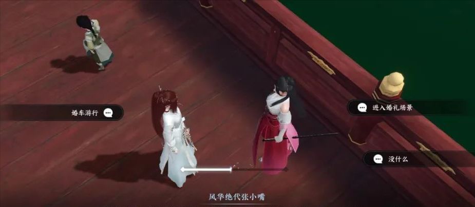汴京(1234,1235)对话童妁妁,大家可以看到有婚礼场景、花车游行的两个玩法。