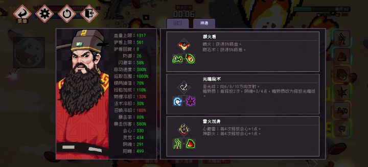 然后,开局配置:必备闪电链+小黑球(加移速),站着挣钱+走着挣钱(来钱快),单挂金银掉落率;二级法术优先 喷火+陨石(提高生存),神韵火+心藏雷(叠属性),闪电链+小黑球(加移速);三级闪电黑球换双圣光(加阳魄)或者一个圣光一个复活,其他法术不换升三级,确保御火盾始终处于激活状态即可;四级找暗物质换复活,在保证御火盾激活的情况下,陨石术优先四级;五级同理。