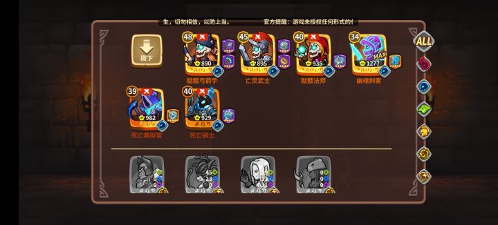 这个阵容忘了是抄哪位大神的了,我与他的练度不同,基本思路是亡灵武士与典狱官抗伤害,他们只要能扛过猪骑BOSS这刀就稳了,目前这阵容试了五次尚未翻车,典狱官不要换亡灵刺客会被猪骑直接秒,也有可能是我的太低了。