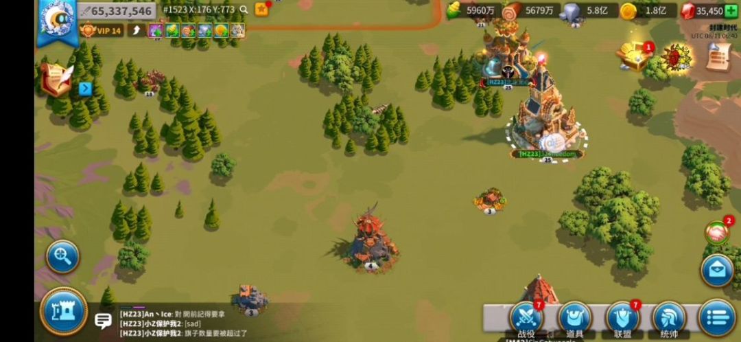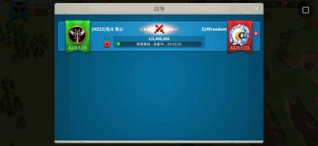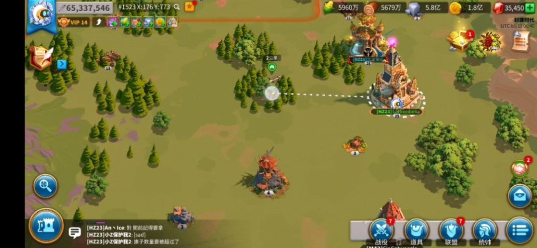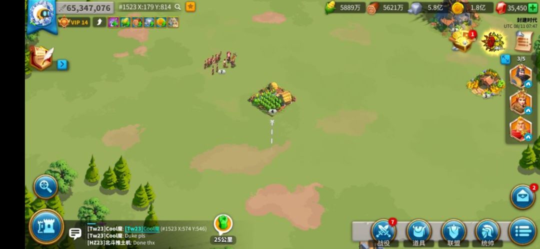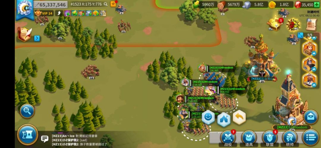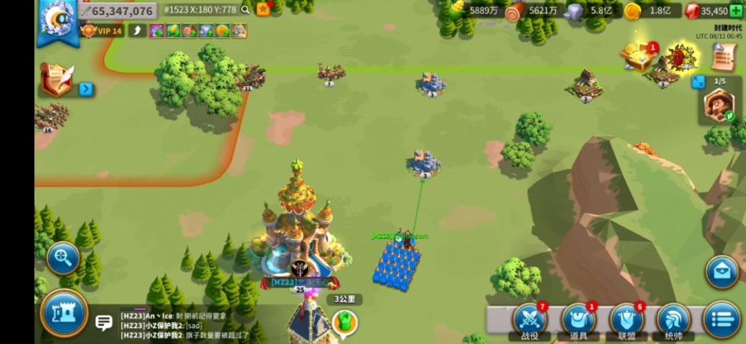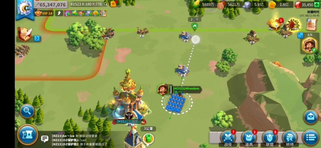 这个时候他因为刚刚狂热,不能开盾,也因为你把他兵引到了附近没有盟友城市和联盟建筑的地方,他没法把这支野外部队放进去随后迁城,只能乖乖原地被零。唯一的破解方式就是让盟友(或者他小号)迁城到他那只部队附近,让他安置一下部队好迁城,但是只有原王国可以这样,KVK只能迁城到领土,所以KVK中此招无解,谁中谁死!(当部队在盟友城市和联盟建筑中时,可以迁城)