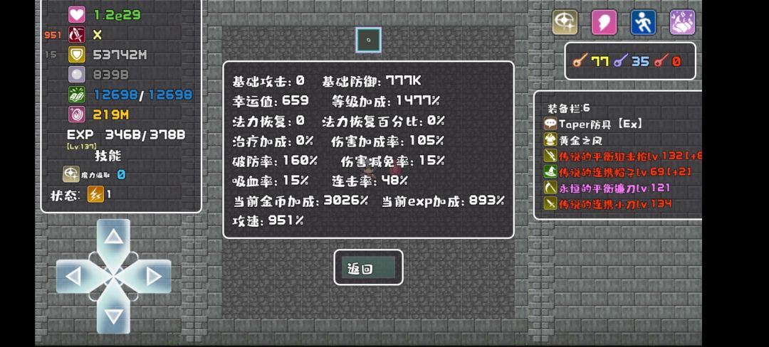 狐妖果然是bug一样的存在,基本有坚固的防御,魔防强效,这两个就可以爬到吐,再加上粘稠血液,毒液防御,2021勋章,狂暴野性,黄金之风,这几个就更简单了,不需要开技能树,爬到1100实在不愿意爬了,估计后面有时间可以无限爬,转生转生