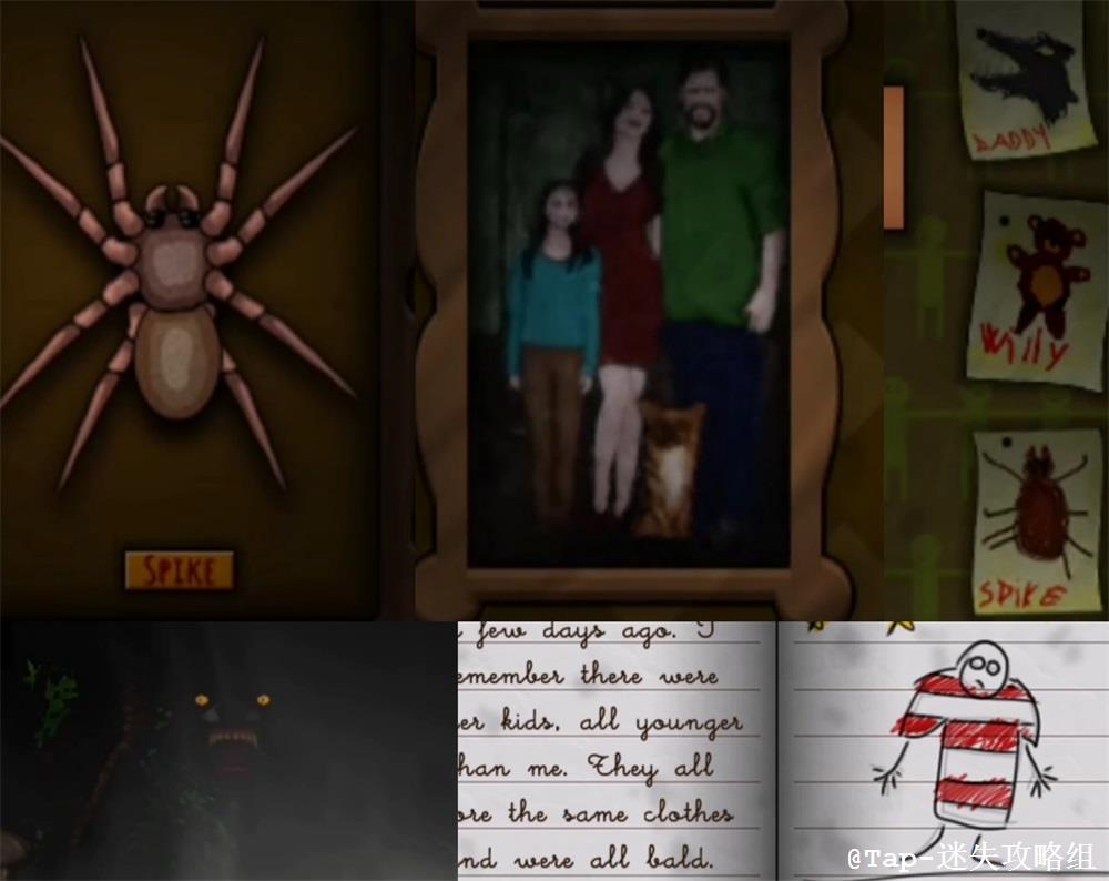 2017年的某天晚上,Jimmy和女友Josephine Taylor驾车出行到遗忘之丘的时候意外抛锚。Jimmy决定让女友先在车里等着,自己则拿着手电筒去不远处的房子那寻求帮助。等他到那里时发现门是开着的且没有门铃,于是他打算直接私闯民宅:“没事,只是借个电话,没人会生气的。”Jimmy刚踏进这个房子,门就突然关住把他锁在了里面,他被困住了。房子里并没有人,不过Jimmy找到了一封明显写给房子主人的信。信中提到房子男主人Joseph Petersen预约了外科诊所,McMillan上校将亲自接待他,这个上校就是Ethan,是上篇文章最后那个带着蜘蛛面具的人。Jimmy接着又找到了三幅儿童画,写着Daddy的狼、写着Willy的熊,以及写着Spike的蜘蛛。Jimmy刚才在墙上见到过一只大蜘蛛,而那就是Spike。中途我们还能看到一张照片,除了一家三口外,还有一条狗,后来Jimmy知道那条狗就是蜘蛛Spike原来的样子,原因我们稍后再谈。Jimmy继续探索房间,等他打开地窖时一只女鬼突然出现,嘴里喊着Willy,将泰迪熊交给她后便消失不见了。这个女鬼就是这家人的女儿Lucy,Willy则是她那个玩具泰迪熊的名字,前面那三幅画当然也是她画的。