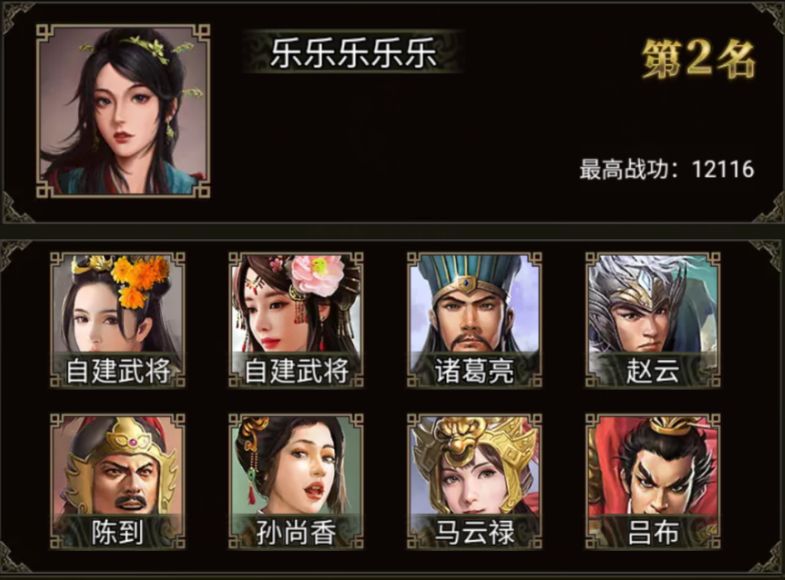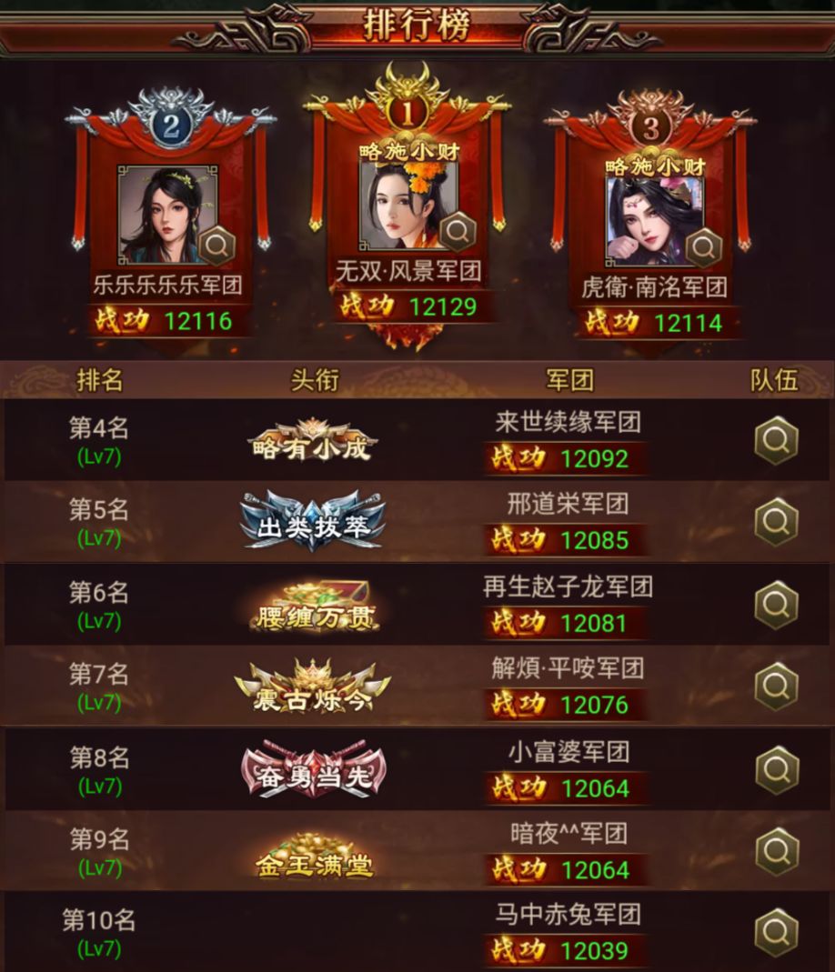 位列第二的 乐乐乐乐乐 军团在这次战役中也是大显身手,拿下 12116 的好成绩!