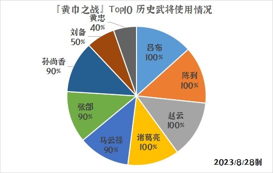 再来看下本次黄巾之战中排名前10大大们的历史武将使用情况: