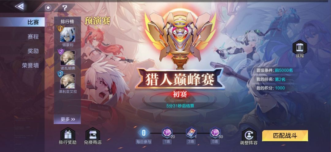 初赛开启时,玩家可在规定的匹配时间段内,进行不限次数的匹配,并进行积分排名。