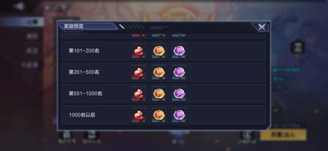 1、初赛结算排名奖励:神圣星石碎片、高阶赛事勋章、赛事勋章