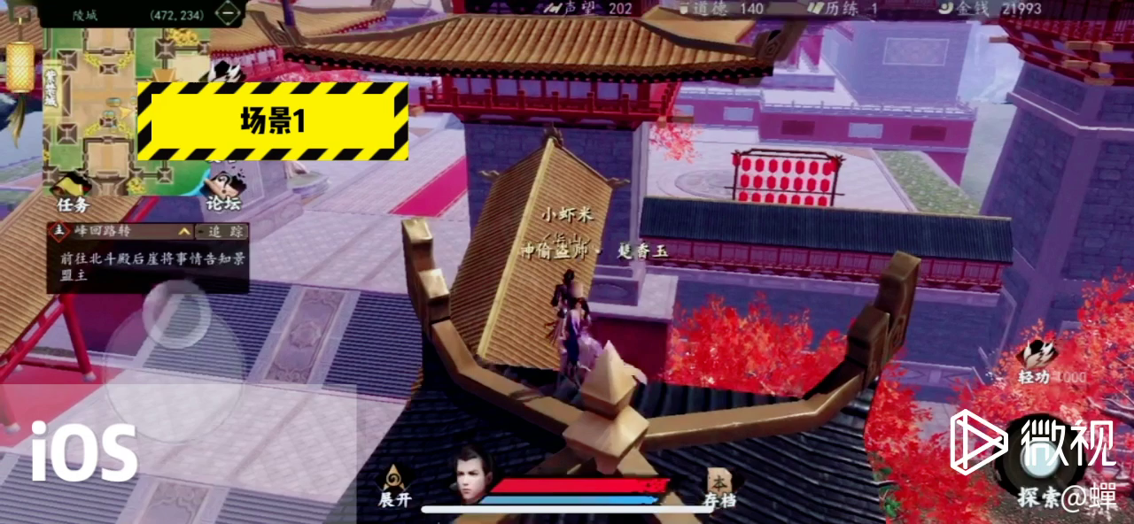 今天跟我玩iOS版本的朋友分享了皇宫屋顶拿拳套的攻略,然后他试了半天跟我说飞不上去,我又反复找了几条路线,发现他好像真的飞不上去………对比了视频感觉iOS的第一段轻功比安卓的第一段要短一点?