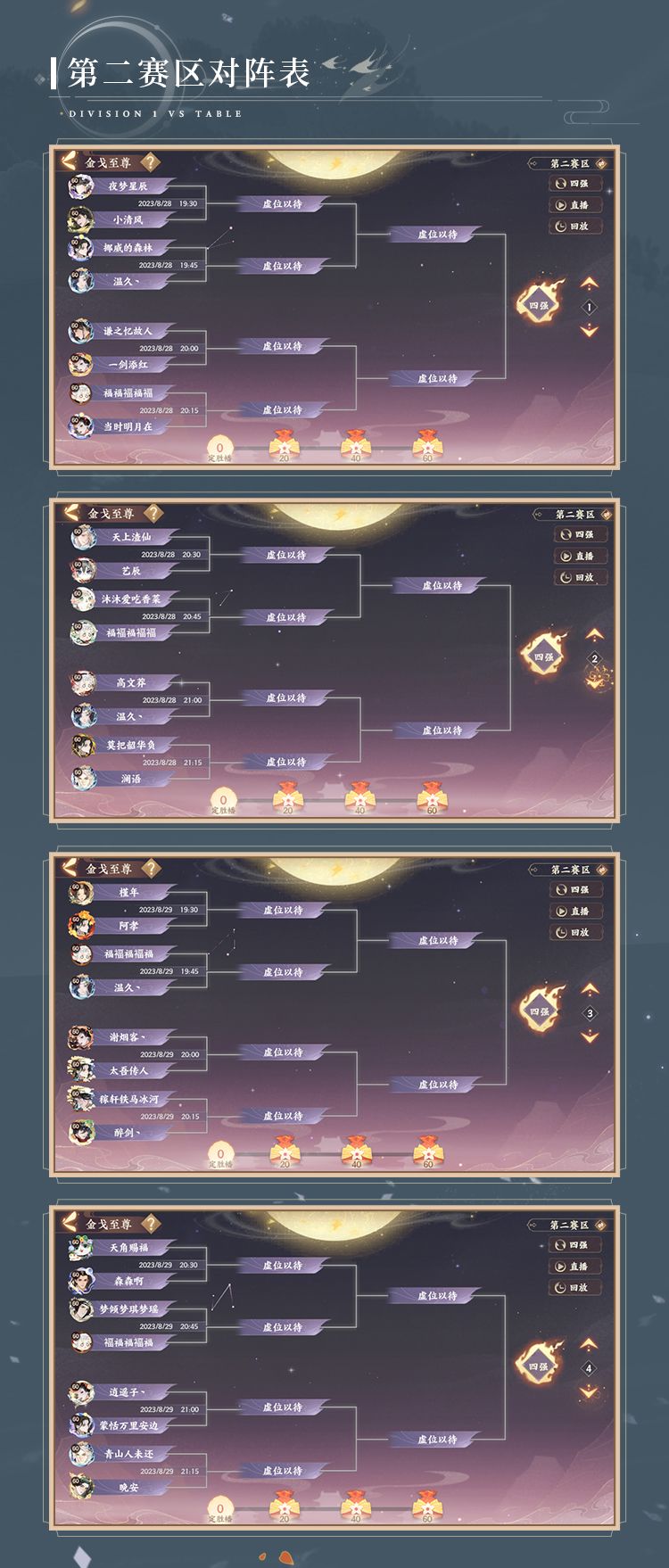 经短暂休整,淘汰赛将于今晚19:30准时开启,愿各位使君乘快哉长风,破万里沧浪,向更高荣耀奋起出击!