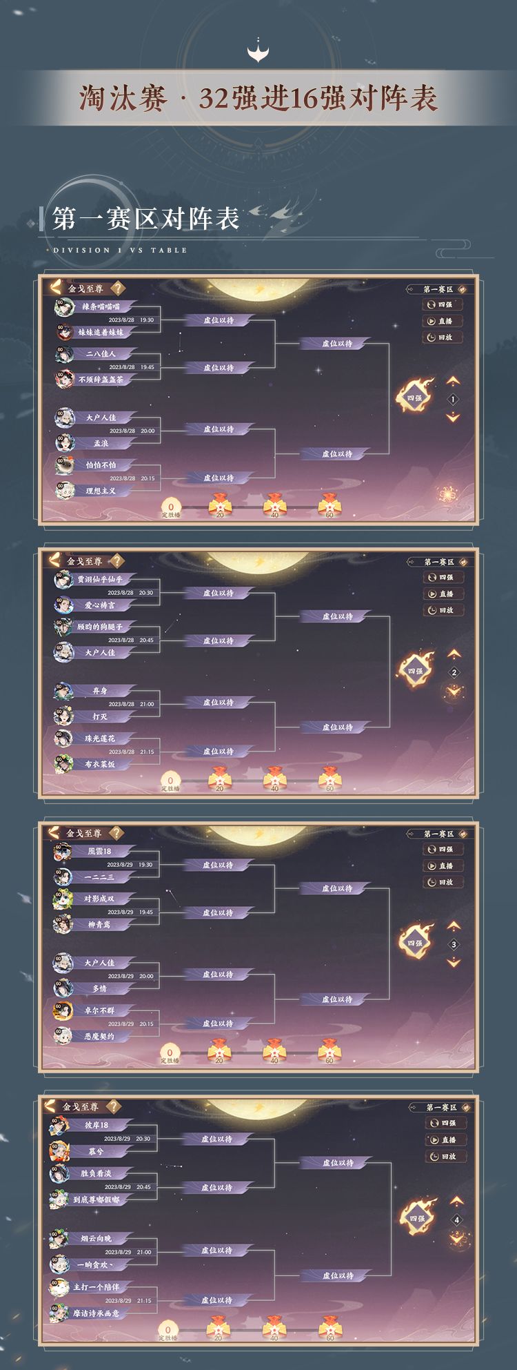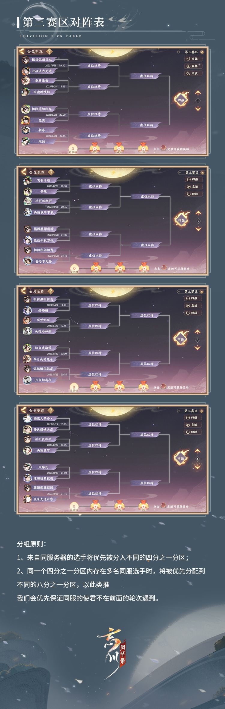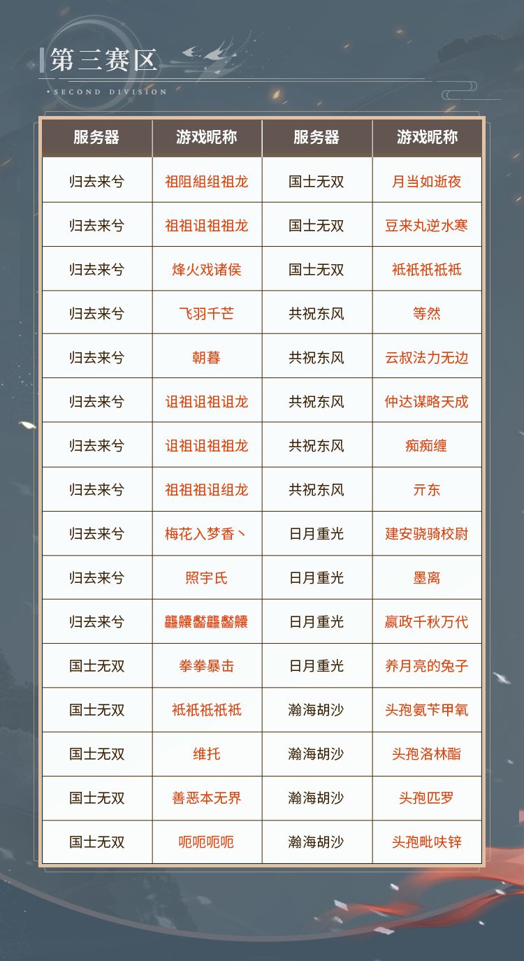#第七届金戈至尊# (沧海赛年第二赛季)积分赛战毕,三大赛区32强晋级名单现已出炉!使君们快来看看最新名单以及对阵表吧,不知其中是否有大家熟悉的选手呢?