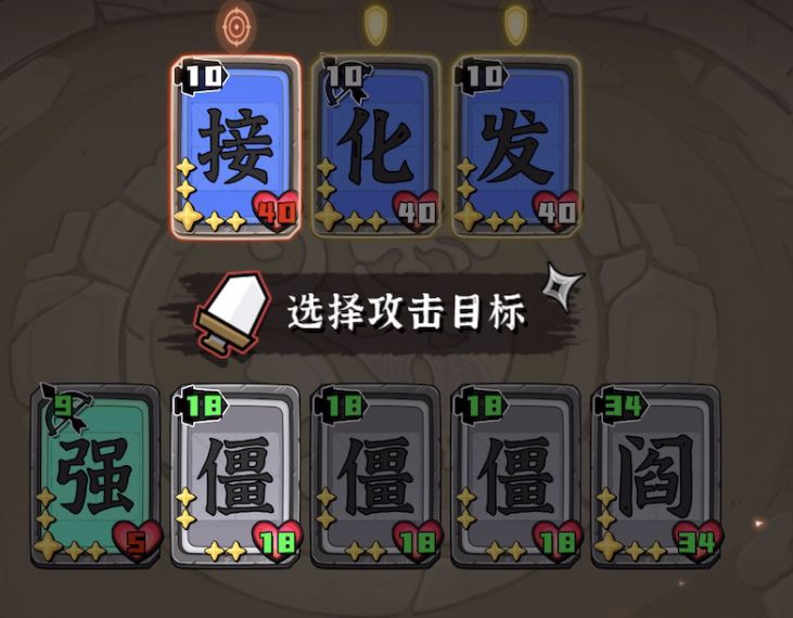 还有让我玩起来非常爽的,当「尸」字在场时,往场上扔个「猫」,「尸」就会变成拥有15点攻击、15点血量超模身材的「僵」;