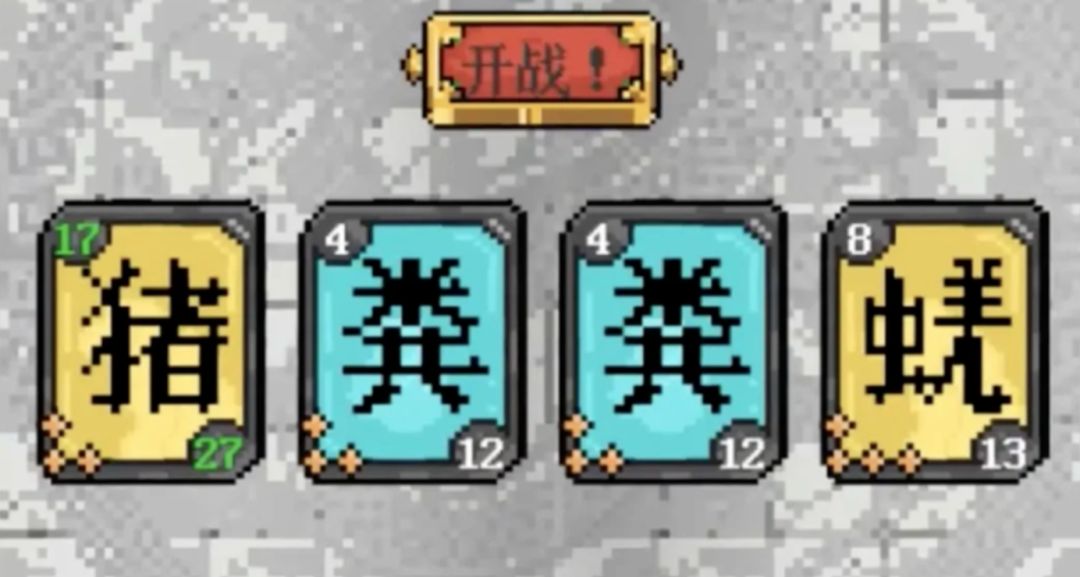 「斧」字攻击「树」字,就能往你手牌里塞一张「木」;「炮」和「弹」放一起威力大增;「狼」和「骨」放一起,则「狼」变「狗」,咋感觉变弱了....