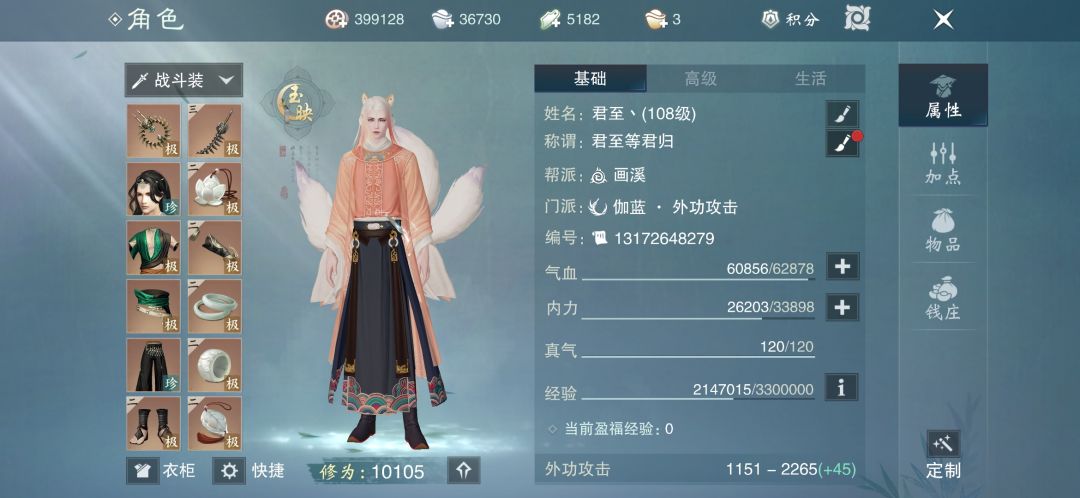 109级中氪玩家应该在9500-10000修为左右。