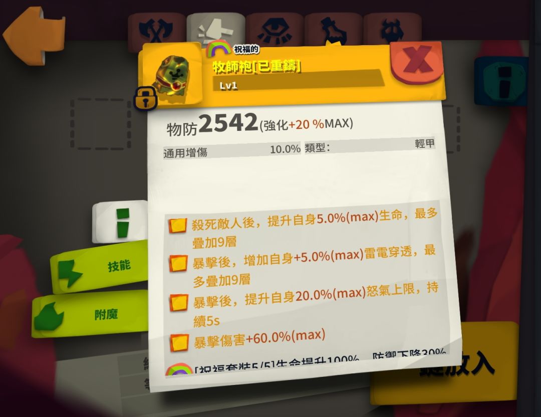 衣服:牧師袍(buff效果)