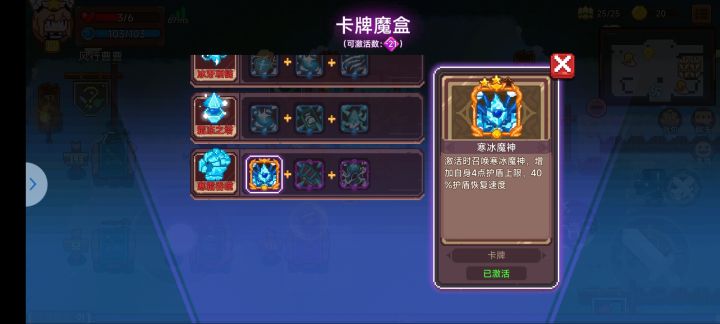 初始携带冷水的祝福因子可以在第一张图里面无限激活卡牌,可以激活同一个卡牌,效果可无限叠加。