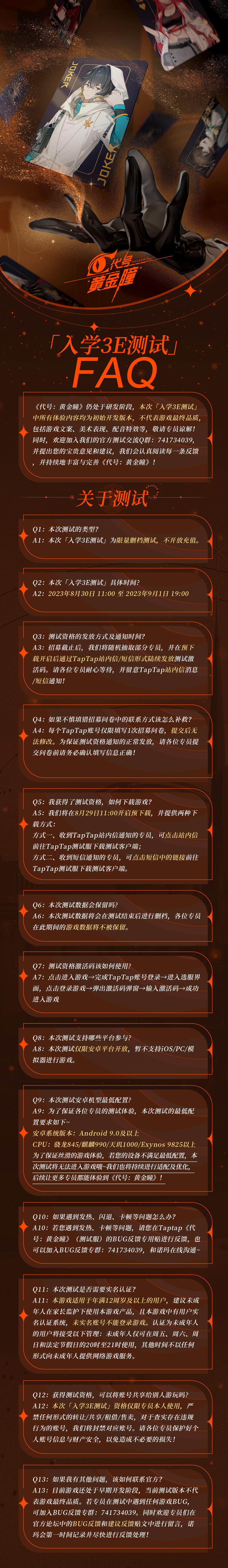 《代号:黄金瞳》「入学3E测试」将于8月30日正式开启! 诺玛为各位大家准备了本次测试的FAQ,欢迎各位专员点击下方长图进行查阅~