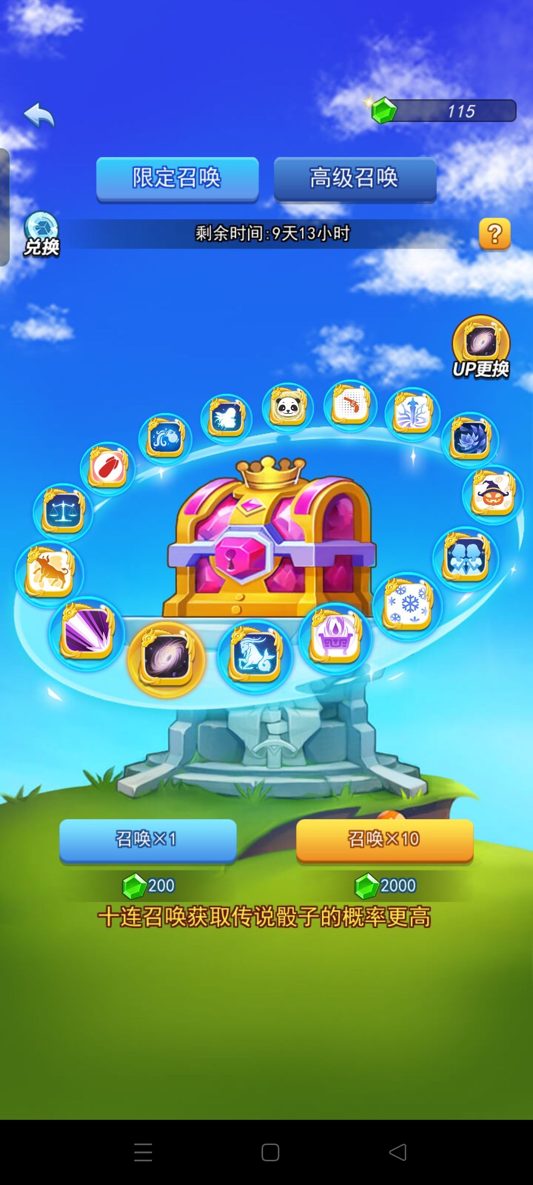 3:回到主页,头像下方有个召唤,点进去可以进入up召唤和高级召唤。而左边有个兑换,可以在那里兑换一些骰子或者是高级招募券。(如456图)