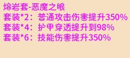 解析:一般叫“火焰”,注意要和“火焰神格”区分,套装二套装四都是der用没有,套装六效果是神技,是唯二可以增加穿透的装备之一