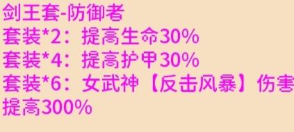 解析:所有属性都是为了女武量身定制,套装二相当于提升战盾30%伤害(好像刷词条就有一两百多,很鸡肋),套装四的效果有点鸡肋,,套装六的效果如其所示