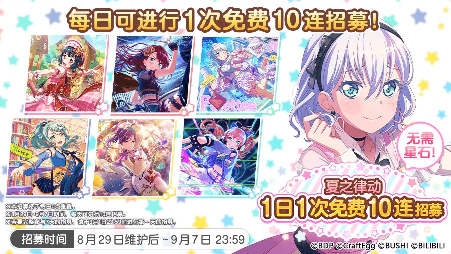 活动三、「夏之律动·后章 1日1次免费10连招募」开启!