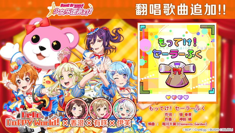 ※若想于「自由演出」、「协力演出」、或者「巡回演出」中「自由巡演」演奏「もってけ!セーラーふく」,请通过CiRCLE乐曲商店购买歌曲。